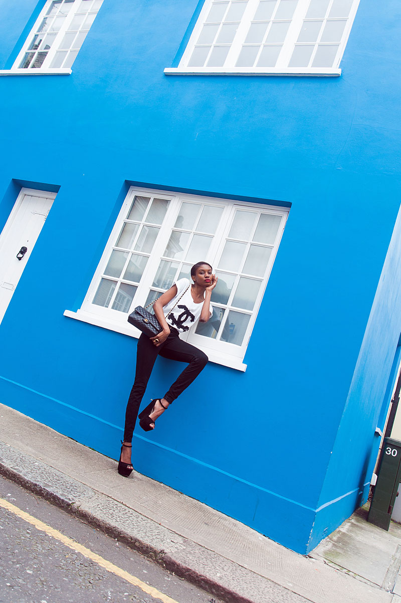 In anticipation of Spring, I have brought out my DIY Chanel tshirt after spending the past couple of days in baggy knitwear. Granted, the weather is already going downhill here in London, so the one day I get to enjoy wearing a tshirt and light jacket, I have opted for my handmade pride and joy. I have been thinking of doing a lot more DIYs for Spring, which I hope will be of interest to you all, so right now I am off to search eBay and haberdashery shops for future projects !