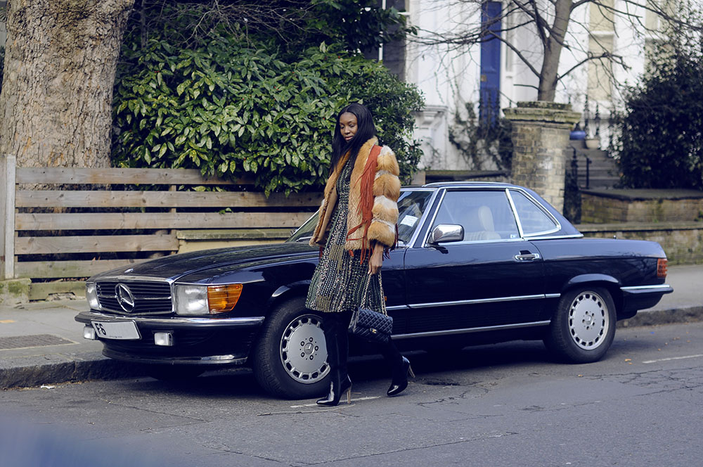 Forever21 vest . Vintage fur coat. F21 dress. Topshop boots. Chanel bag.